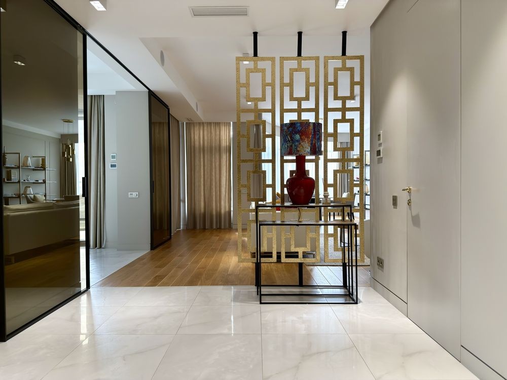 Стильний, сучасний, авторський дизайн-проєкт виконаний із використанням лише якісних і дорогоцінних матеріалів. Продумане планування дозволило організувати простір квартири максимально ефективно.
