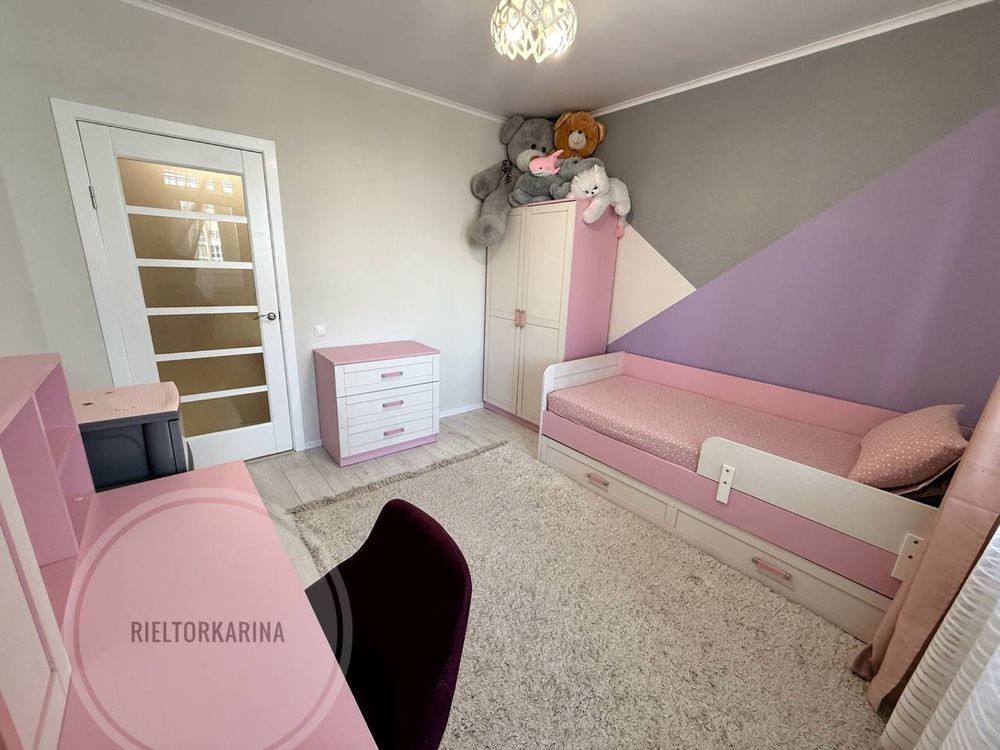 Квартиру розділили на 3 кімнати, забравши балкон для використання як спальна кімната, тому маємо спальню+ зал+ дитячу.
