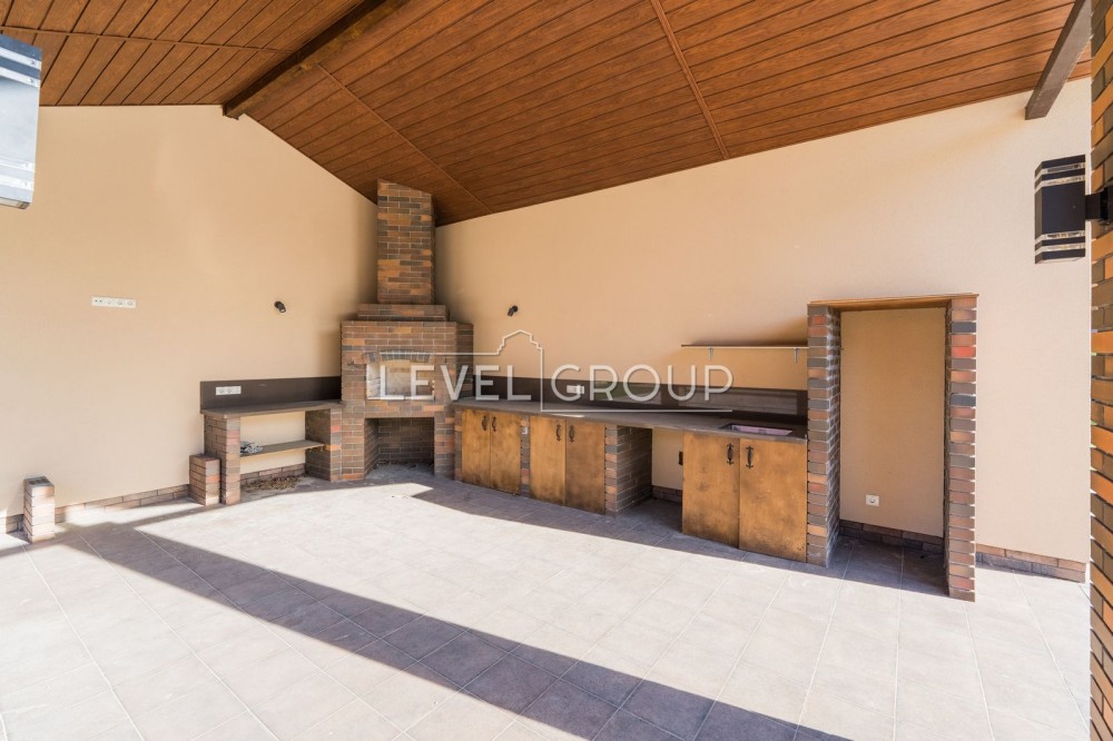 У вітальні, яка зєднана зі їдальнею, в затишній обстановці розташований мякий диван, з розхронізованим видом на камін та смарт ТБ! В одній зони розташовані їдальня, вітальня, кухня з островом та виходом на терасу, яка плавно перетікає у вуличну зону барбекю та басейн! Майстер-зона: спальня з виходом на терасу, гардероб та санвузол. Спальня (дитяча), санвузол, кабінет (спальня). У будинку тепла підлога, очищення води, стабілізатори напруги, кухня на замовлення. Все виготовлено із дорогих матеріалів провідних світових брендів. Ділянка: автонавіс на 2 авто, зона барбекю з мангалом, басейн з усіма комунікаціями (без навісу). Є можливість купити сусідню прилеглу ділянку 17 соток. Є відео..