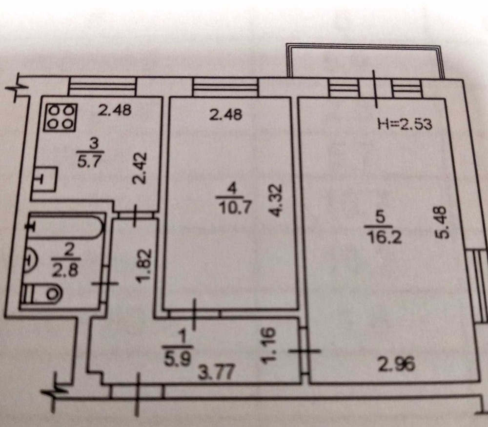 2/5 цегляного 44/27/6, є балкон.
