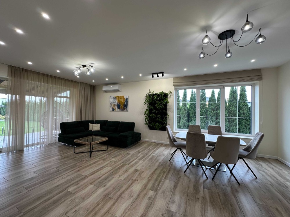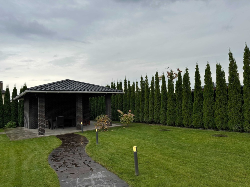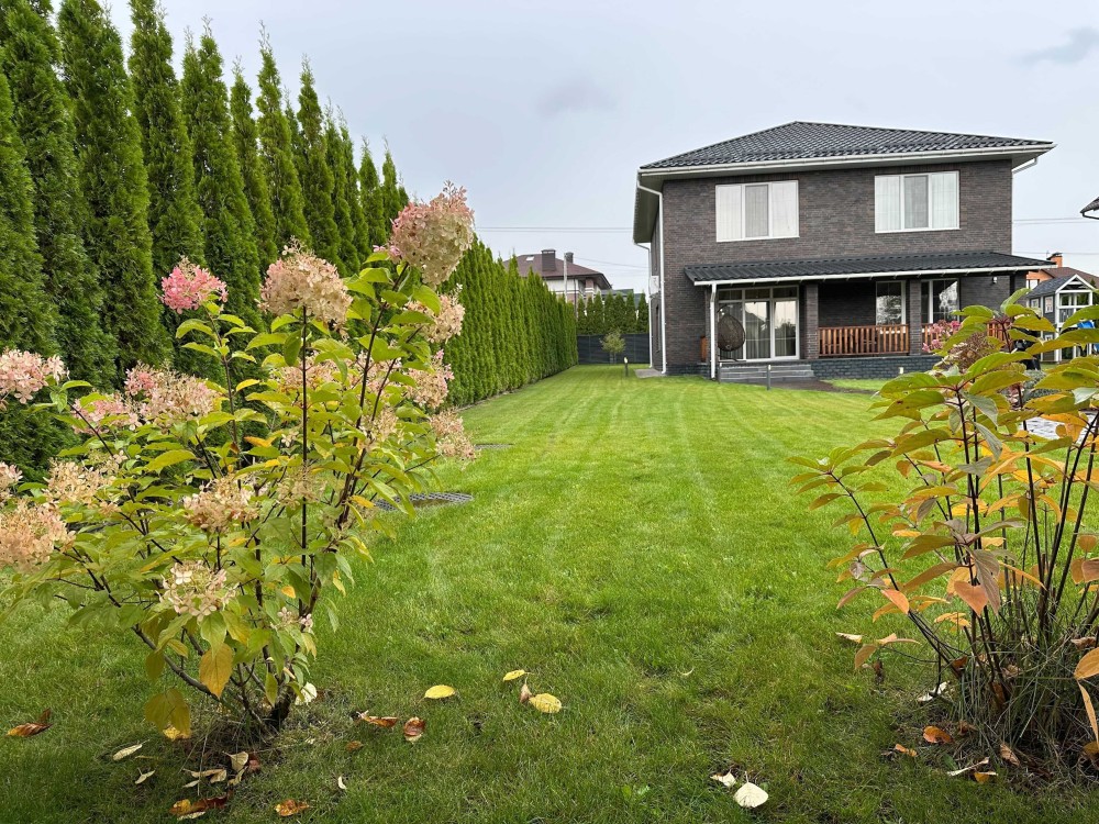 Власники будували будинок для себе і своєї сім'ї, це проявляється у раціональному плануванні кімнат будинку та зеленої території з басейном, зоною барбекю та дитячим ігровим будиночком.