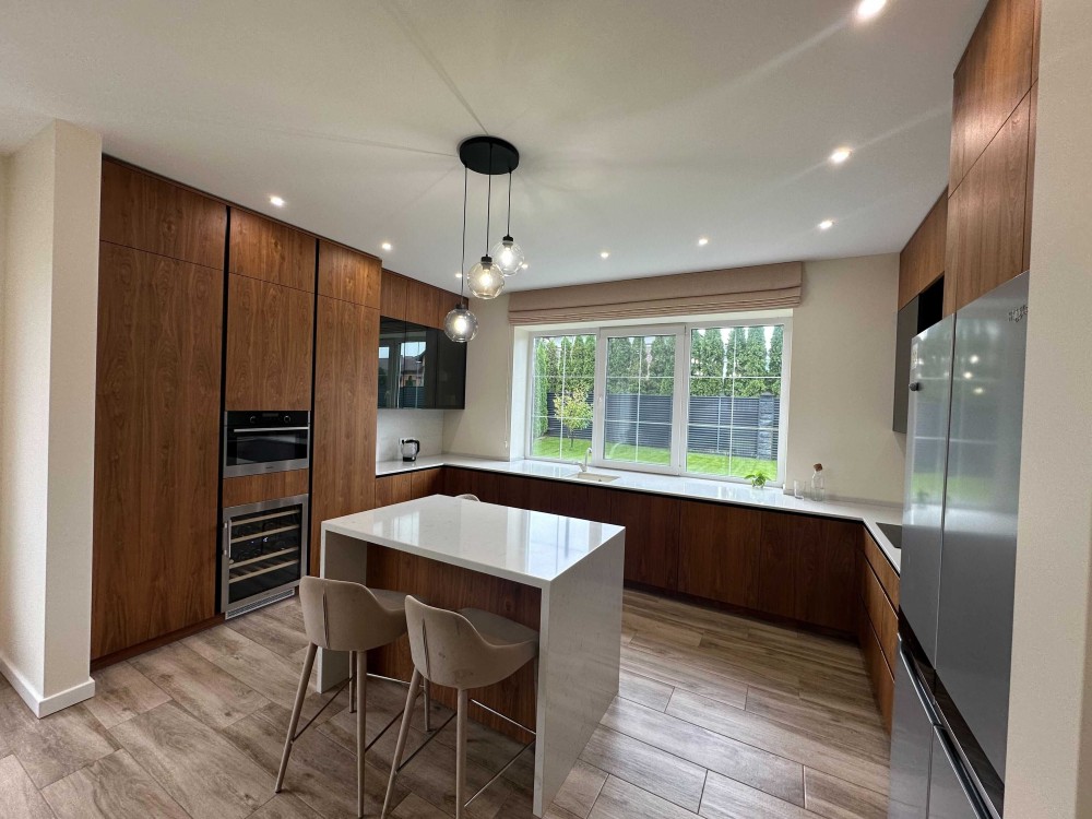 Встановлено підігрів підлоги на першому поверсі та в усіх санвузлах. Взимку, надійний тепловий насос (вода-вода) забезпечує опалення та гаряче водопостачання всього будинку з максимальною ефективністю та мінімальними витратами на електроенергію.