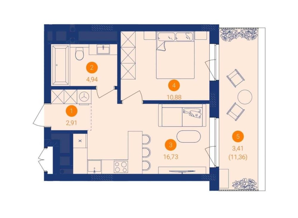 Площа: 38.87 м.кв.