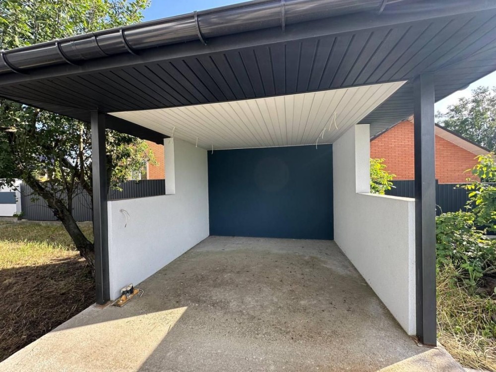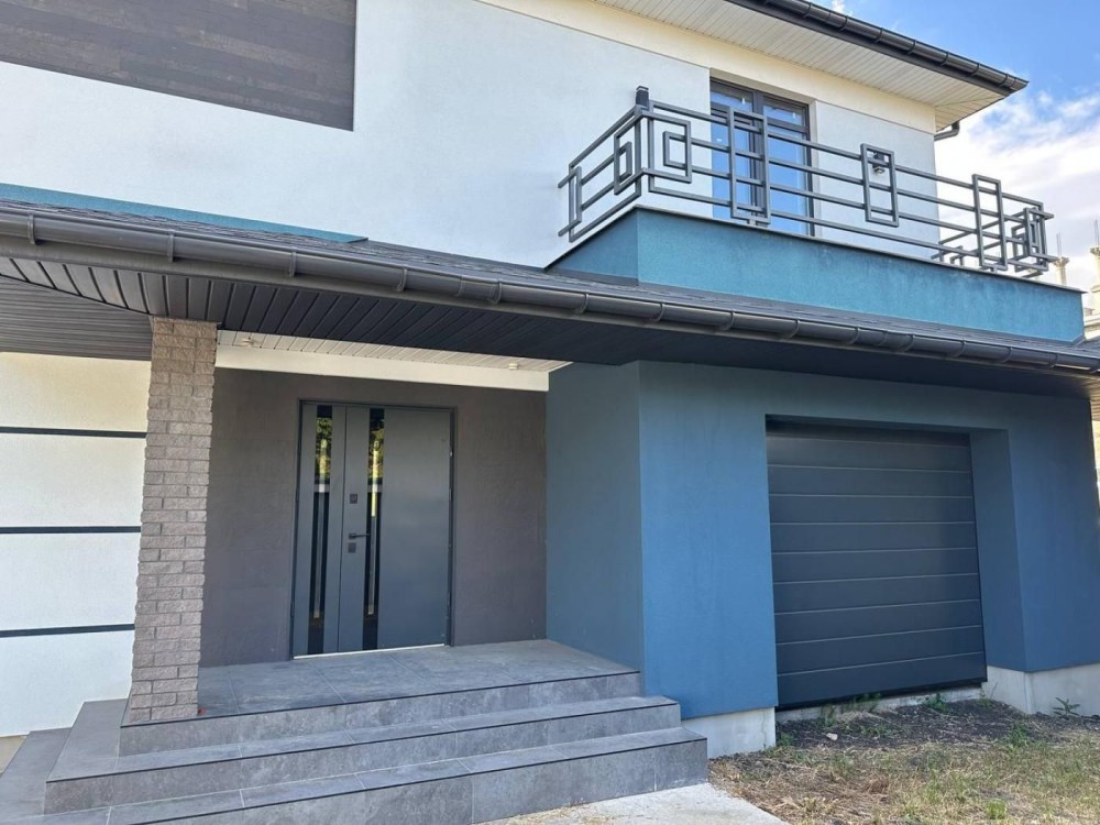 Технічні характеристики: стіни утеплені ПСБ-100 мм, енергоефективні вікна Salamander EURO 73 графітового кольору, бітумна покрівля (утеплення покрівлі мінватою 200 мм), відкатні ворота, сучасний паркан, великий навіс під авто, альтанка, гараж, велика тераса з навісом.