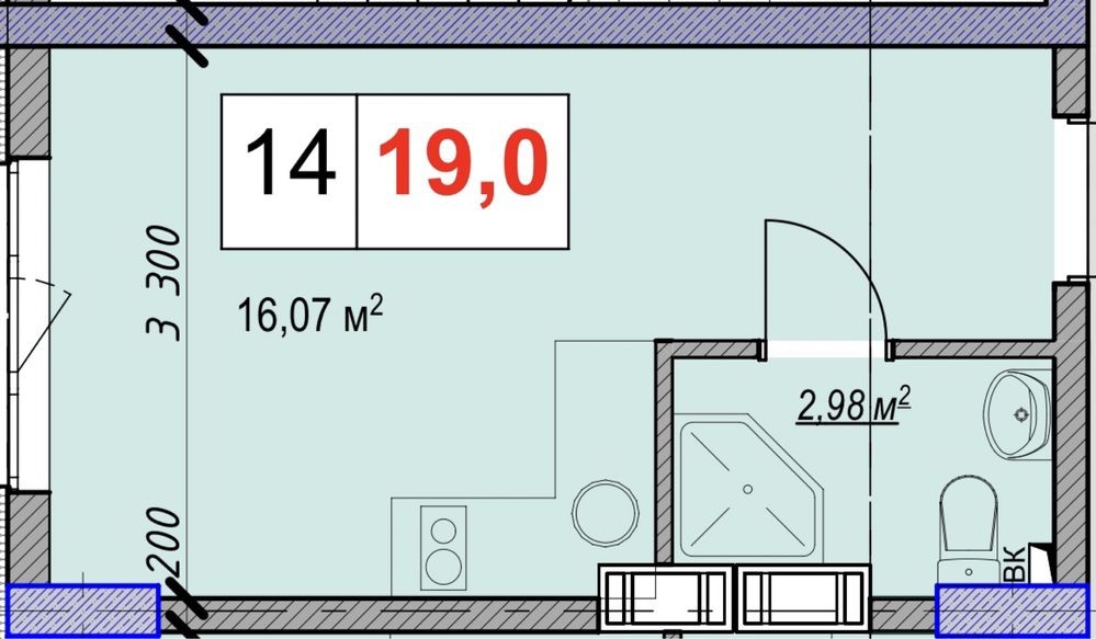 • Загальна площа 19 м2