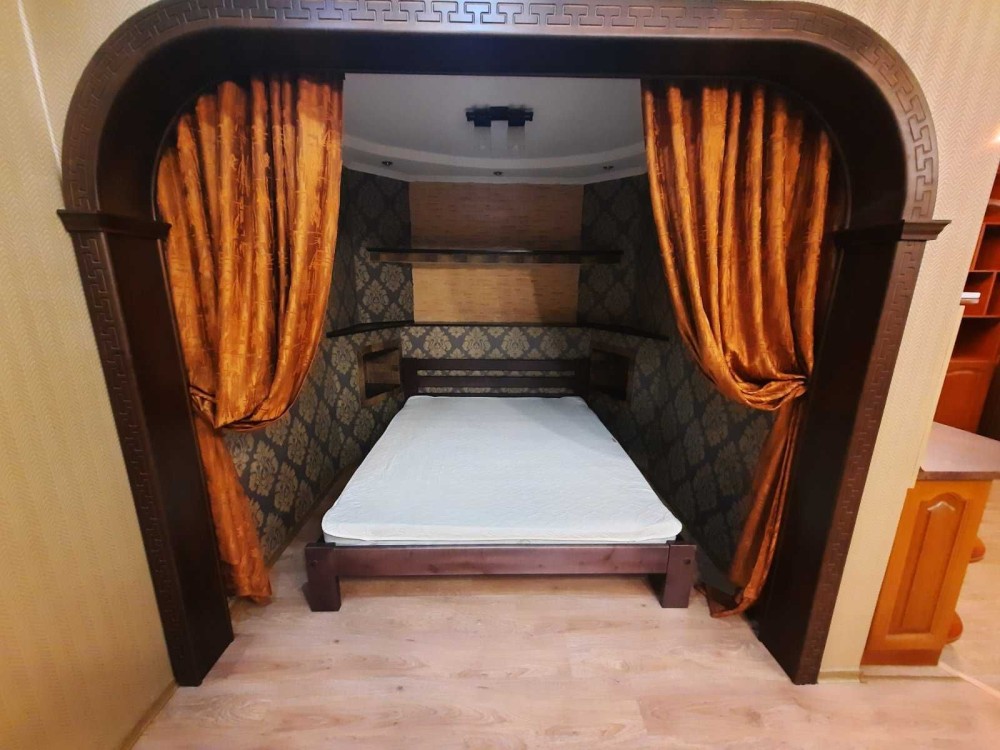 Планировка - большая кухня студия + ниша с двухспальной кроватью