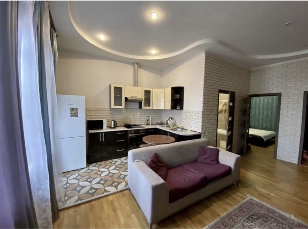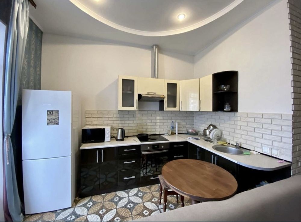 Оренда стильної 1 к кв з кухнею студією в новому будинку ЖК "Файна Таун" в Шевченківському районі, вул. Салютна, 2 Квартира 43 м2 , розташована на четвертому поверсі та складається з передпокою, спальні, великої кухні -студії та санвузла. Вікна квартири виходять в двір. Облаштована всіма необхідними меблями з екологічно чистої деревини та оснащена побутовою технікою: телевізор Samsung Smart 43, кондиціонери в кухні та кімнаті, плита індукційна, вбудований холодильник, духова шафа з функцією мікрохвильової печі, пральна машина з сушаркою. В кухні та ванній кімнаті тепла підлога, високошвидкісний інтернет. ЖК "Файна Таун" це: закрита територія з входом по картці, цілодобова охорона, відеоспостереження, паркінг, підземні контейнери для сміття, зарядні станції для електромобілів та лавки з інтегрованими батареями для підзарядки девайсів, розумне освітлення, яке підлаштовується під час доби та ще багато чого для того, щоб жити з комфортом й ні в чому себе не обмежувати) розповім при перегляді. Зручне транспортне сполучення та розвинута інфраструктура: магазини,спортивні та пішохідні зони ,зона барбекю, ресторани та кафе. Квартира, в якій поєднані комфорт та затишок, шукає своїх порядних орендарів молоду пару або одну людину без дітей та тварин. Перша оренда, квартира вільна.