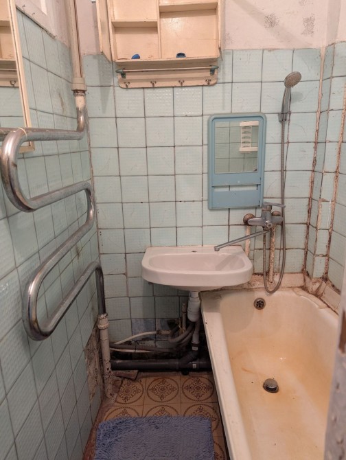 Комнаты раздельные, есть необходимая мебель. Бытовая техника: газовая плита и бойлер. Без холодильника и стиральной машины. На воду, свет и газ есть счетчики. Санузел раздельный. Балкон незастеклен. Отопление — централизованное.