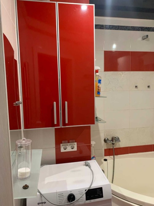 В квартире шкафы - купе, гардероб, две кровати, встроенная кухня, холодильник, стиральная машина, бойлер
