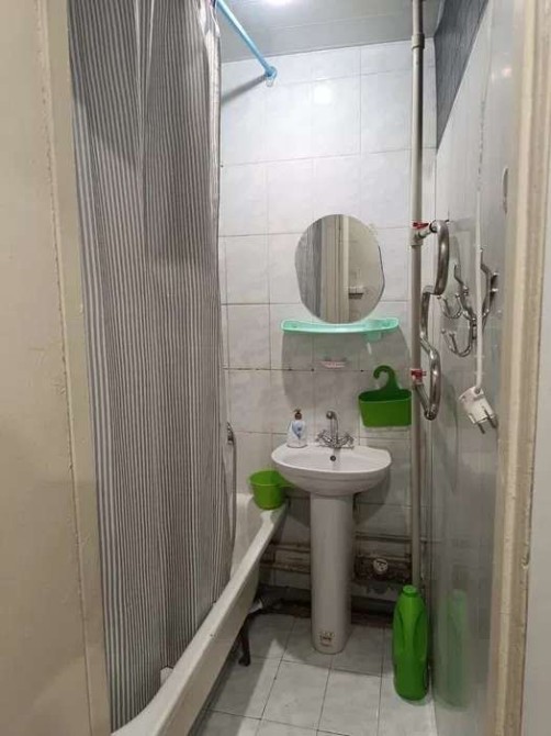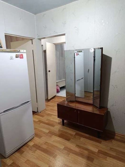 В доме есть лифт, балкон, домофон. Чистая, жилое состояние. Есть газовая плита с духовкой, кухонные шкафы, обеденный стол, холодильник, стиральная машина. Ванная и туалет на фото. Есть бойлер. Стоят счетчики воды. В комнатах нет кроватей и диванов. Есть, ковер, небольшой шкаф, тумба с зеркалом (трельяж). Рядом метро, остановки транспорта, магазины.