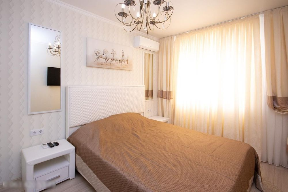 В квартире есть все условия для комфортного проживания. Квартира с дизайнерским ремонтом, имеет 2 спальни и просторную кухню-студию с выходом на открытый балкон. Укомплектована мебелью и техникой: холодильник, посудомоечная машина, варочная панель, духовой шкаф, микроволновая печь, электрочайник, стиральная машина, утюг, пылесос, бойлер. В каждой комнате есть телевизор и кондиционер. Санузел совместный, с душевой кабиной. Дополнительно теплые полы в ванной комнате и на балконе. Вся квартира на электричестве. Отопление централизованное. Счетчики на свет и воду.