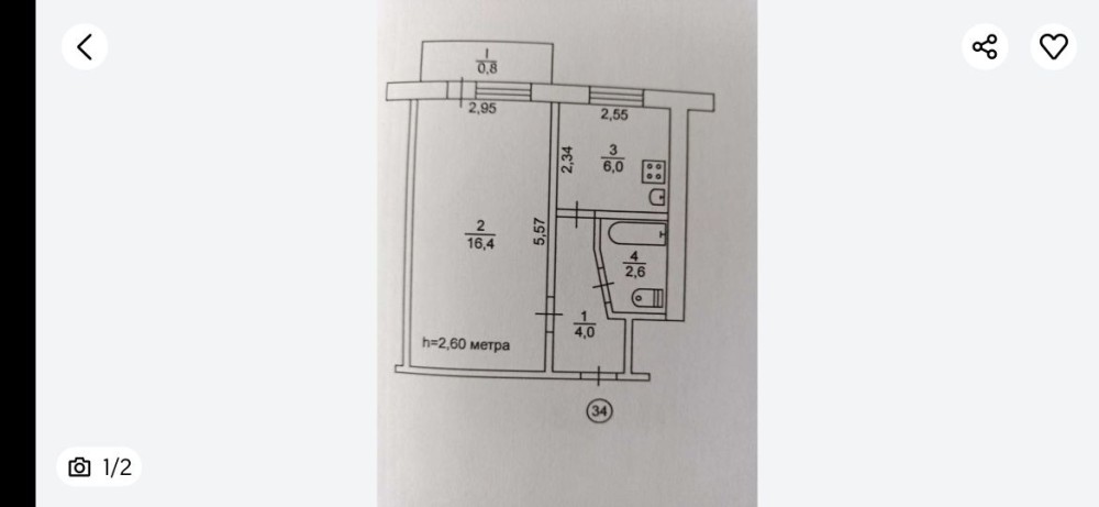 • Общая площадь 36 м2