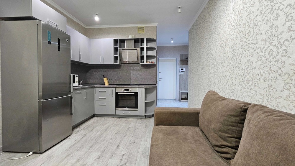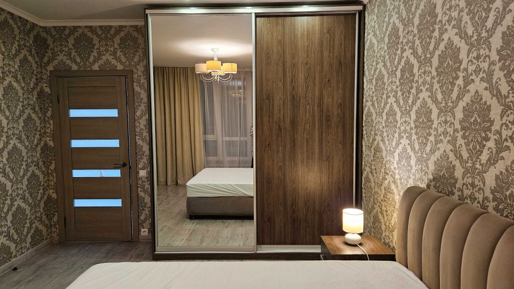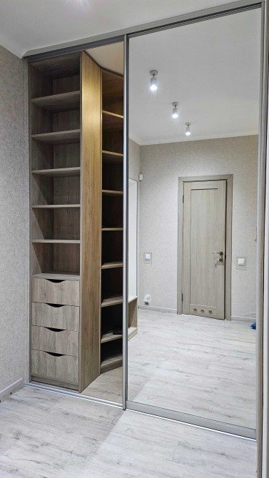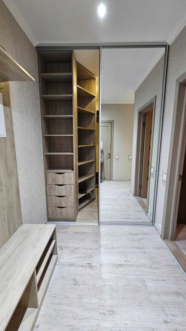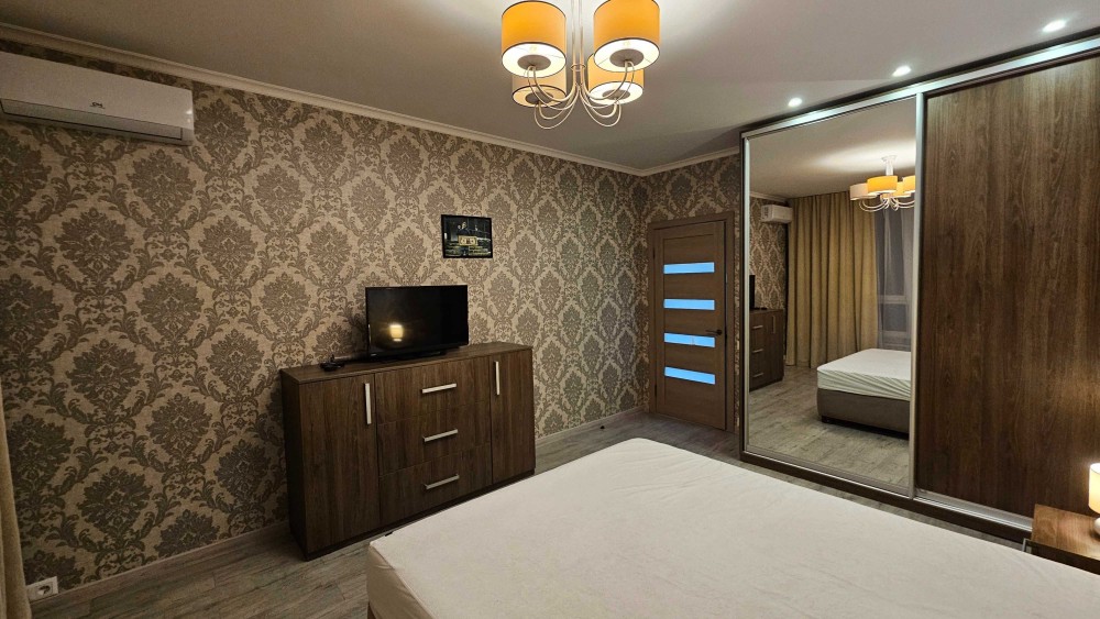 23/26кб, 47метрів. Повноцінна 1 кімнатна. Велика гардеробна .Спальня окремо(ліжко) кухня вітальня.(диван)