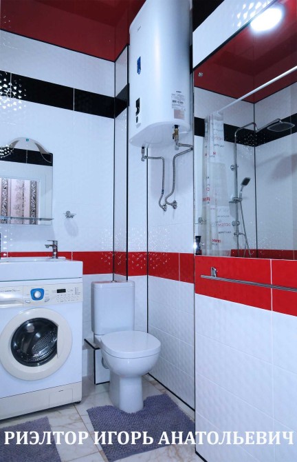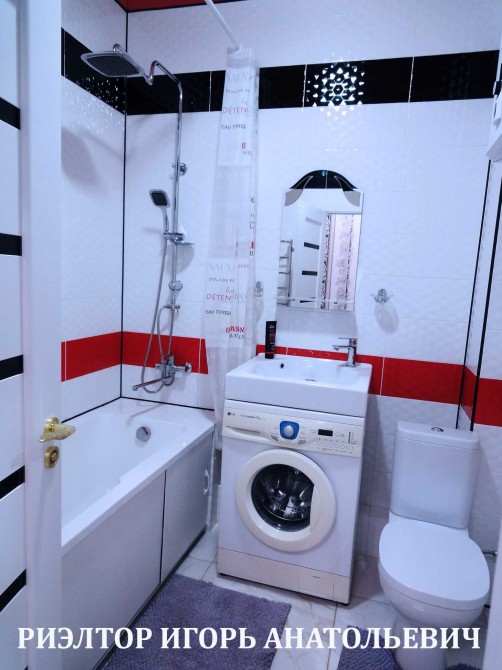 - Совмещённый и облицованный плиткой санузел, туалет/ванная.