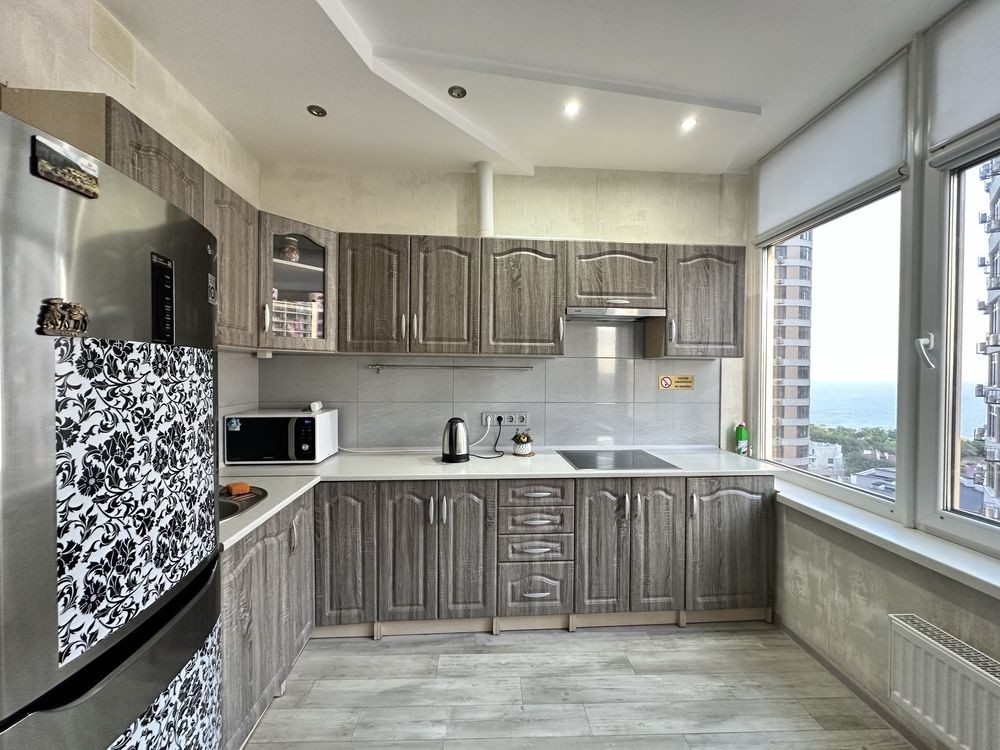 Код: 111. С 23.09. ДОЛГОСРОЧНАЯ АРЕНДА (без выселения на летний период). Квартира с двумя спальнями в Ж/К «Южная Пальмира», ул. Генуэзская, 5, 16/25 эт. дома, общая площадь 92 кв. м. Уютная квартира, евроремонт, кухня-студия + две спальни. В комнатах двуспальные кровати, LCD телевизор с кабельным телевидением. Полностью укомплектована большая кухня-студия с бытовой техникой. Wi-Fi интернет, кондиционер. Панорамный вид на город. Дом расположен в 10 минутах ходьбы от Аркадии, напротив супермаркет «Таврия-В», фитнес клуб «Sport Life». Квартира сдается для жильцов без животных. Аренда от 6-ти месяцев и более. Стоимость может варьироваться в зависимости от срока аренды. Перед просмотром уточните наличие и детали по VIBER, WHATSAPP или TELEGRAM, указав «КОД» из объявления. КОМИССИЯ ЗА УСЛУГИ РИЭЛТОРА - 50% от месячной аренды (разовая оплата при оформлении договора).