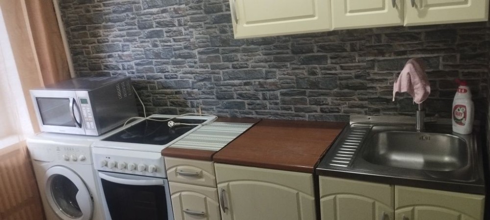 3кімнатна квартира, перебудована у 2кімнатну. Кухня-студія має телевізор, кондіціонер, диван, софу, посудомийну машину, пральну машину, витяжку, духову піч та вихід на балкон. Вікна кухні виходять у двір. Вікна спальні на проспект Миру. В спальні також є кондіціонер та телевізор. Ванна велика, має вуглову ванну та бойлер. Підійде для сімї з 3 людей. Поряд знаходиться бібліотека, магазин, море, кафе, банк та парк. Здається з проживанням і влітку також, без виселення. Деталі за телефоном.