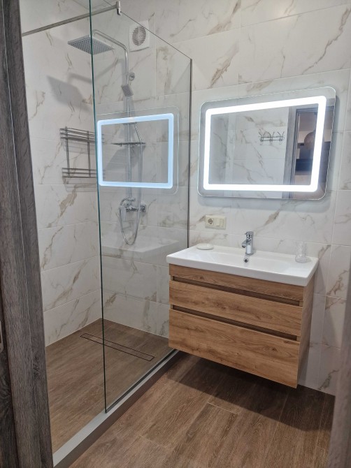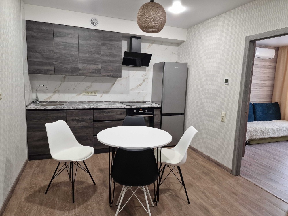 Сдам 2к квартиру, комнаты раздельные, кухня -студия с диваном в одной комнате и кровать двуспальная в другой комнате, балкон, теплые полы электрические в зонах где кафель, душевая кабина современная, два кондиционера зима и лето, встроенная кухня с зоной отдыха и прихожая зона шкаф-купе встроенный, посудомоечная машинка и вся техника есть.
