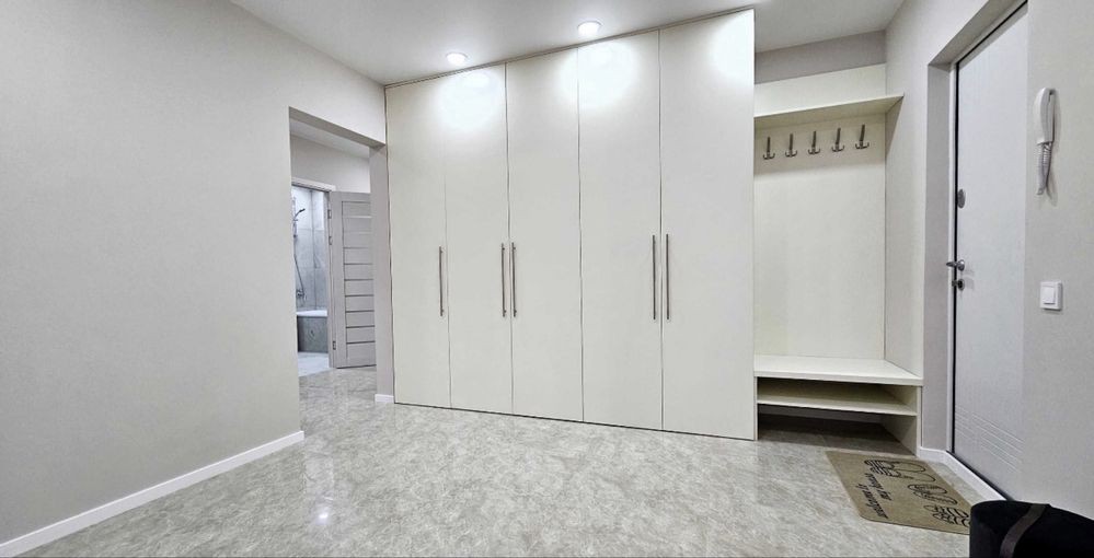 Повний комплект сучасних меблів: кухня, вбудовані шафи, дивани, двоспальне ліжко з ортопедичним матрацом, обідній стіл, стільці та ін. та кухні, пилосос і т.д.