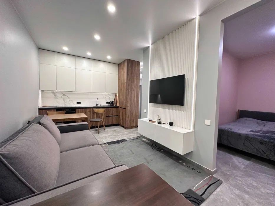11/12 эт. 42 м. Студия отдельно спальня (без двери) гардеробная. Ванна. Автономное газовое. Подземный паркинг.