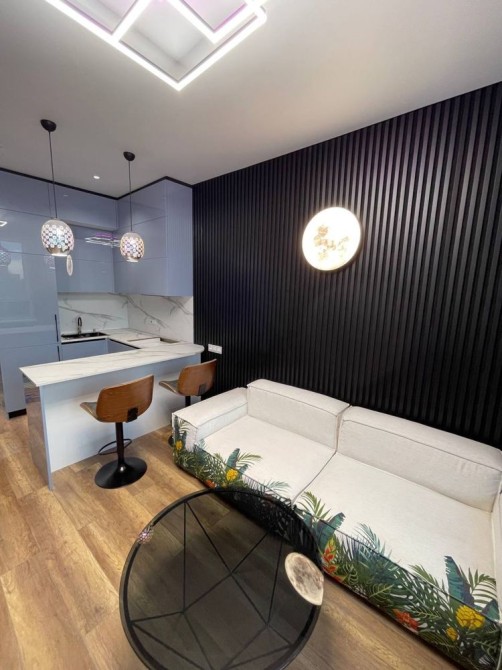 Оренда стильної 1 к кв з кухнею студією в новому будинку ЖК "Файна Таун" в Шевченківському районі, вул. Салютна, 2 Квартира 43 м2 , розташована на четвертому поверсі та складається з передпокою, спальні, великої кухні -студії та санвузла. Вікна квартири виходять в двір. Облаштована всіма необхідними меблями з екологічно чистої деревини та оснащена побутовою технікою: телевізор Samsung Smart 43, кондиціонери в кухні та кімнаті, плита індукційна, вбудований холодильник, духова шафа з функцією мікрохвильової печі, пральна машина з сушаркою. В кухні та ванній кімнаті тепла підлога, високошвидкісний інтернет. ЖК "Файна Таун" це: закрита територія з входом по картці, цілодобова охорона, відеоспостереження, паркінг, підземні контейнери для сміття, зарядні станції для електромобілів та лавки з інтегрованими батареями для підзарядки девайсів, розумне освітлення, яке підлаштовується під час доби та ще багато чого для того, щоб жити з комфортом й ні в чому себе не обмежувати) розповім при перегляді. Зручне транспортне сполучення та розвинута інфраструктура: магазини,спортивні та пішохідні зони ,зона барбекю, ресторани та кафе. Квартира, в якій поєднані комфорт та затишок, шукає своїх порядних орендарів молоду пару або одну людину без дітей та тварин. Перша оренда, квартира вільна.