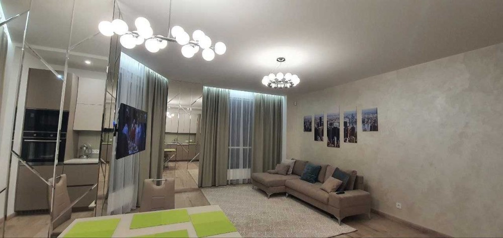 Оренда стильної 1 к кв з кухнею студією в новому будинку ЖК "Файна Таун" в Шевченківському районі, вул. Салютна, 2 Квартира 43 м2 , розташована на четвертому поверсі та складається з передпокою, спальні, великої кухні -студії та санвузла. Вікна квартири виходять в двір. Облаштована всіма необхідними меблями з екологічно чистої деревини та оснащена побутовою технікою: телевізор Samsung Smart 43, кондиціонери в кухні та кімнаті, плита індукційна, вбудований холодильник, духова шафа з функцією мікрохвильової печі, пральна машина з сушаркою. В кухні та ванній кімнаті тепла підлога, високошвидкісний інтернет. ЖК "Файна Таун" це: закрита територія з входом по картці, цілодобова охорона, відеоспостереження, паркінг, підземні контейнери для сміття, зарядні станції для електромобілів та лавки з інтегрованими батареями для підзарядки девайсів, розумне освітлення, яке підлаштовується під час доби та ще багато чого для того, щоб жити з комфортом й ні в чому себе не обмежувати) розповім при перегляді. Зручне транспортне сполучення та розвинута інфраструктура: магазини,спортивні та пішохідні зони ,зона барбекю, ресторани та кафе. Квартира, в якій поєднані комфорт та затишок, шукає своїх порядних орендарів молоду пару або одну людину без дітей та тварин. Перша оренда, квартира вільна.