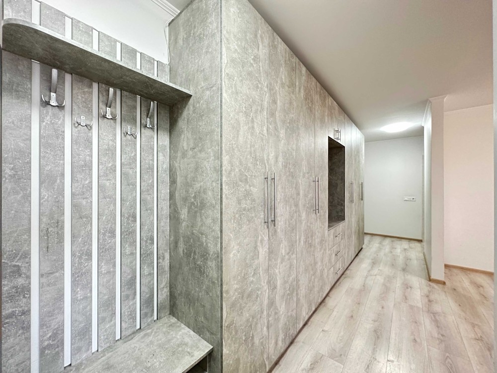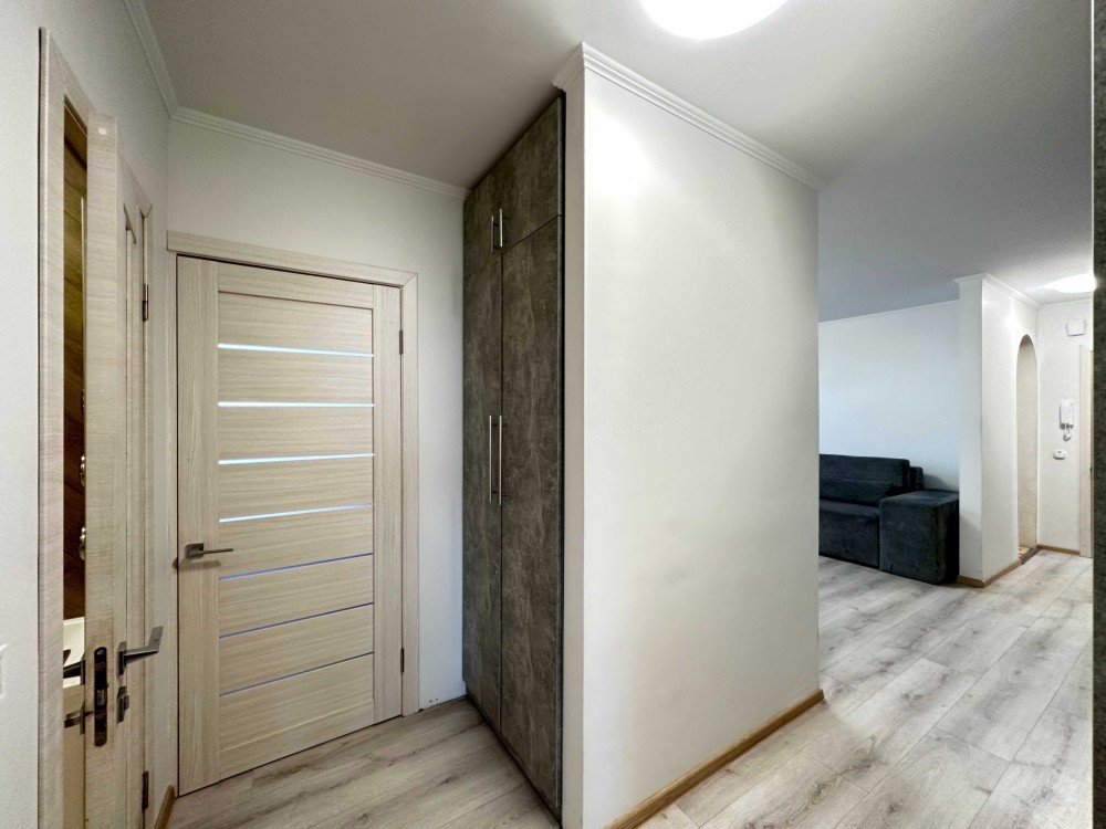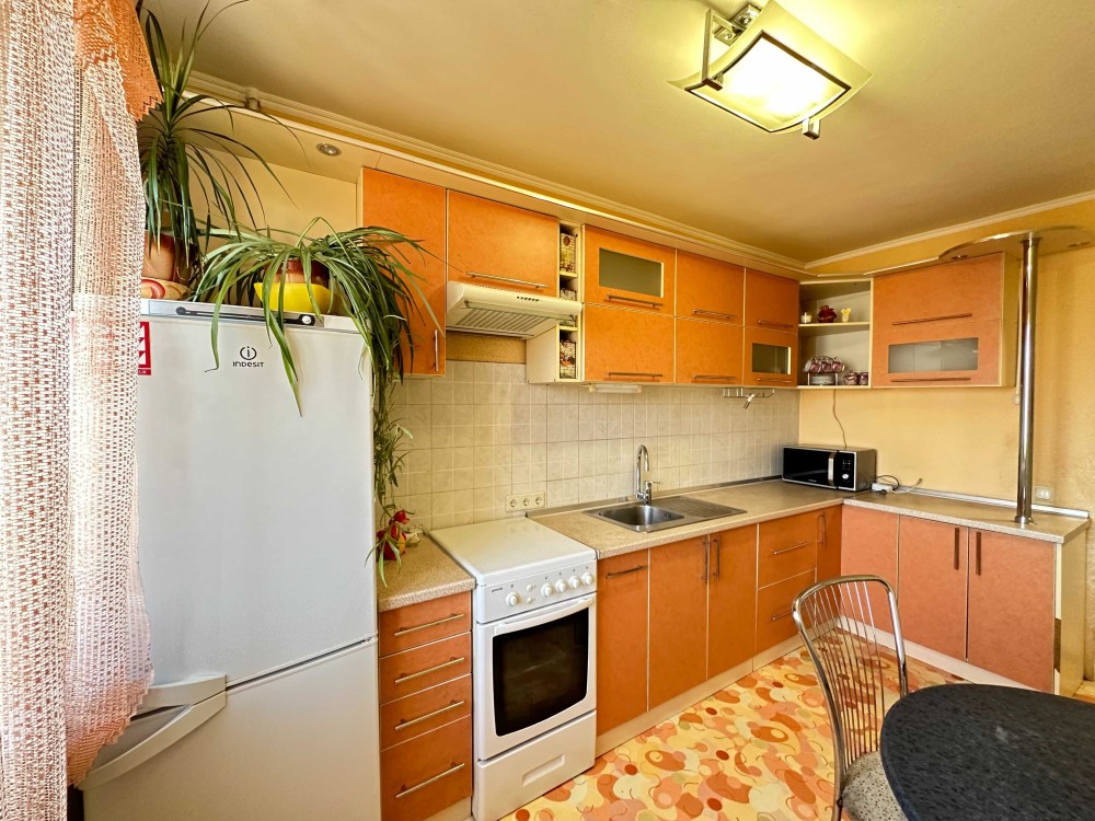 Встроенная кухня, кухонный стол+стулья, газоваяплита, вытяжка, микроволновка, холодильник, мебель: два дивана, двухспальная кровать, шкаф-купе+гардероб, стиральная машина, телевизор, кондиционер, бойлер, на полу ламинат, TV кабельное+интернет, вся бытовая техника ведущих производителей, качественная сантехника, в санузле кафель, два балкона застеклены. Очень теплая, уютная квартира двухсторонняя. Чистый, аккуратный подъезд, новый лифт, место для парковки для автомобиля.