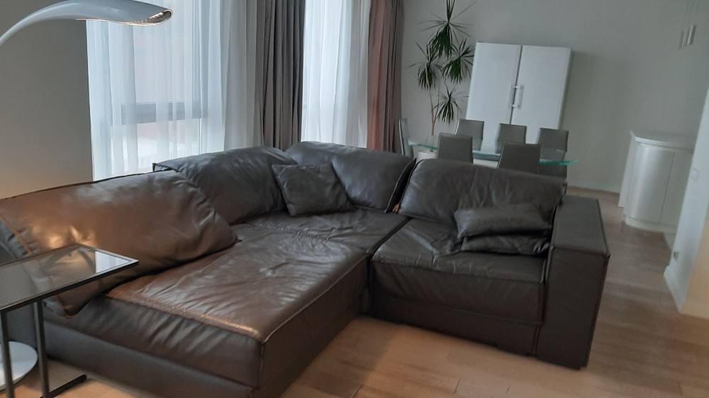 - Кухня-студия, совмещенная с гостиной. Кухня выполнена под заказ с системой touch. Встроенный пылесос и совок для уборки.