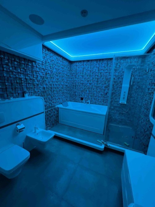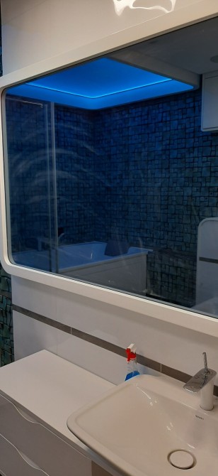 - Санузел с душевой кабиной и ванной-джакузи Villeroy Boch. Встроеный в зеркало телевизор.