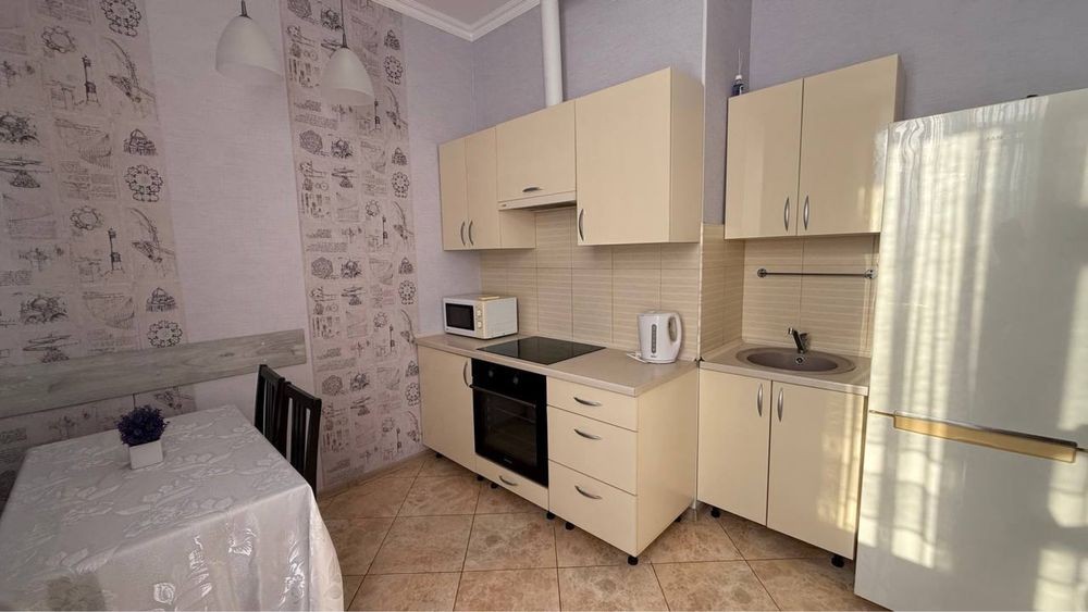Код: 159. ПОМЕСЯЧНО АРЕНДА АКТУАЛЬНА В ПЕРИОД С 01.09 ДО 30.05 (в летний сезон сдается посуточно от 2-х суток, раннее бронирование от 5-и суток и более). Квартира с балконом и видом на город в центре Одессы, ул. Ланжероновская, 21, 2/2 эт. дома, общая площадь 50 кв. м. Необычный эксклюзивный ремонт, кухня-студия и спальня, (зона гостиной с раскладным диваном, спальня с кроватью) всего спальных мест – 4 (2+2), раздельный санузел с душем. Квартира оснащена всей необходимой мебелью и бытовой техникой: кондиционер, ТВ (кабельное), WI-FI интернет. Рядом Оперный театр, улица Дерибасовская, Приморский бульвар, «Морвокзал». Аренда от 1-го месяца и более. Стоимость может варьироваться в зависимости от срока аренды. Перед просмотром уточните наличие и детали по VIBER, WHATSAPP или TELEGRAM, указав «КОД» из объявления. КОМИССИЯ ЗА УСЛУГИ РИЭЛТОРА - 50% от месячной аренды (разовая оплата при оформлении договора).