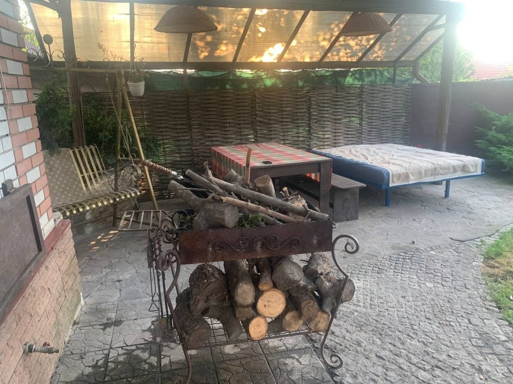 Во дворе беседка и мангал.