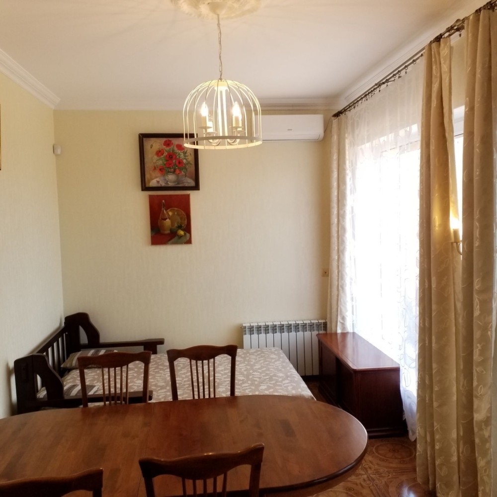 Код: 2249. (В летние месяцы цена немного повышается). Двухкомнатный дом в закрытом кооперативе на ул. Костанди. Евроремонт, общая площадь 100 кв. м., участок 4 сотки. Планировка: гостиная, спальня, большая кухня.В доме есть вся необходимая мебель и бытовая техника: холодильник, посудомоечная машина, варочная панель, утюг, электрочайник, плита, стиральная машина, пылесос, духовой шкаф, микроволновая печь, скоростной Wi-Fi интернет, телевизор, индивидуальное газовое отопление. Автономность при блэкауте: работает интернет, подключено резервное питание, работает отопление, работает водопоснабжение. Очень тихое место и приятные соседи, к морю пешком 10 минут. Своя территория с мангалом, беседкой, и два гостевых дома. В основном доме везде установлены теплые полы. Возможно проживание с животными. Аренда от 6-ти месяцев и более. Стоимость может варьироваться в зависимости от срока аренды. Перед просмотром уточните наличие и важные для вас детали по VIBER, WHATSAPP или TELEGRAM, указав «КОД» из объявления. КОМИССИЯ ЗА УСЛУГИ РИЭЛТОРА - 50% от месячной аренды (разовая оплата при оформлении договора). Пояснения: Сдается с 1 марта. В летние месяцы цена немного повышается. Костанди — это киевский район