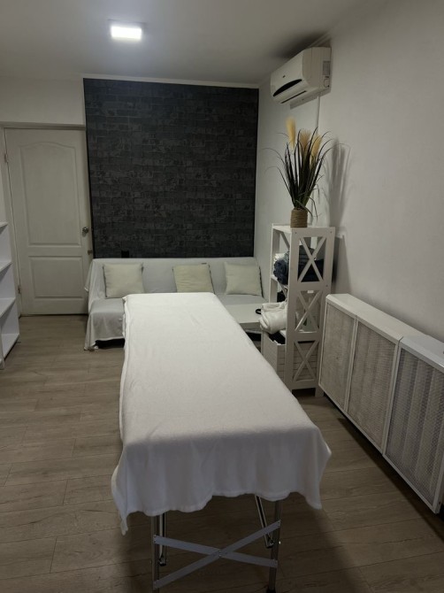 В помещение есть раскладной стол, стулья, кушетка для массажа, диванчик, туалет.