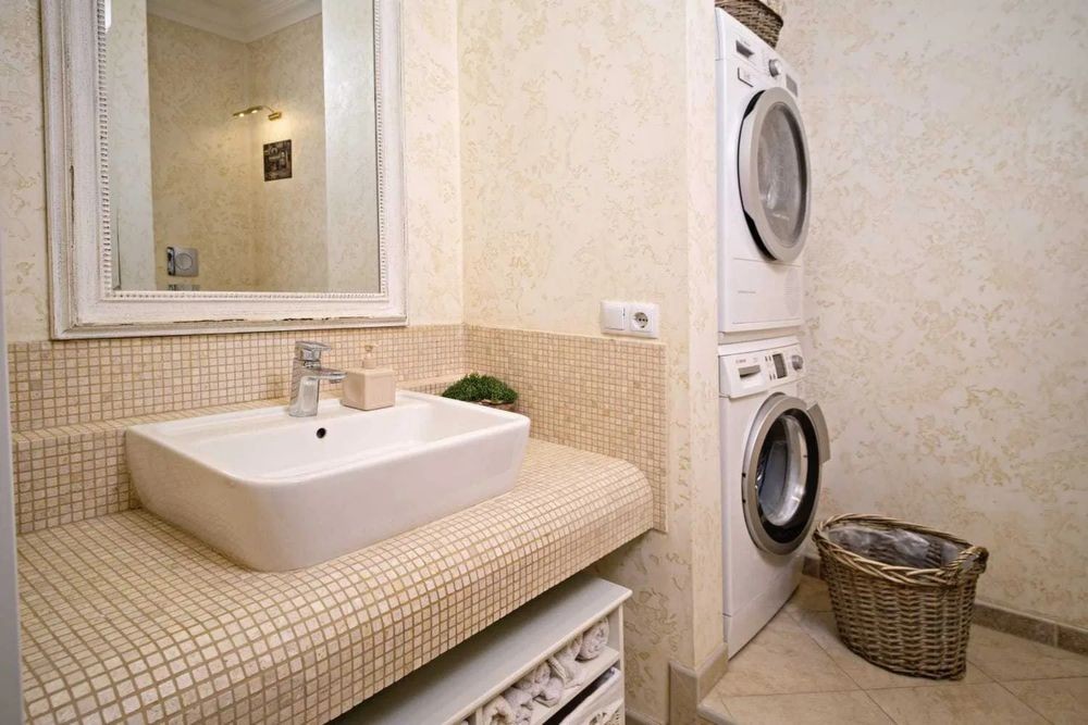 Квартира укомплектована всем самым необходимым для комфортного проживания, включая посудомоечную машину, кофемашину и сушильную машину