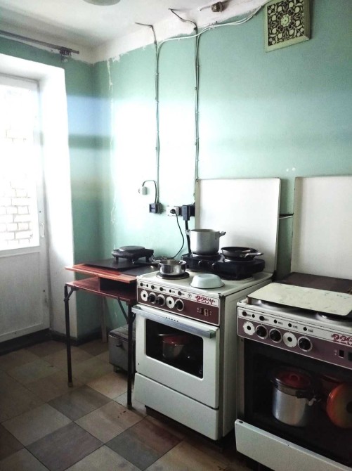 Общежитие блочного типа; комната- 17 кв.м, кухня- 14 кв.м с балконом, мойками, электроплиты.