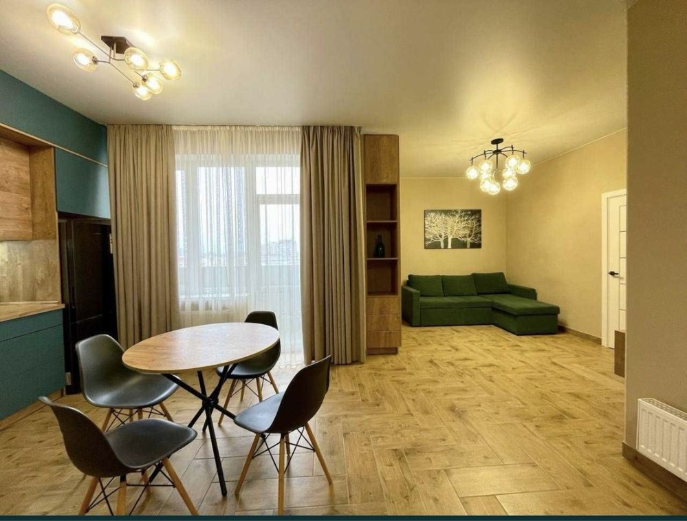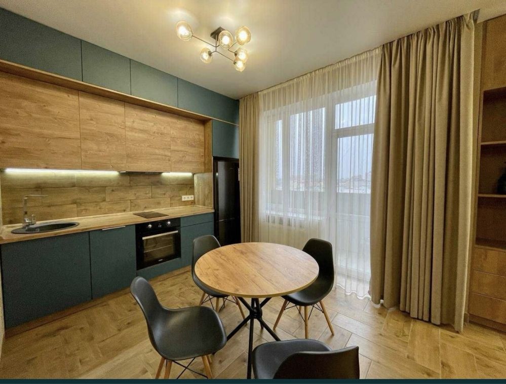 Оренда стильної 1 к кв з кухнею студією в новому будинку ЖК "Файна Таун" в Шевченківському районі, вул. Салютна, 2 Квартира 43 м2 , розташована на четвертому поверсі та складається з передпокою, спальні, великої кухні -студії та санвузла. Вікна квартири виходять в двір. Облаштована всіма необхідними меблями з екологічно чистої деревини та оснащена побутовою технікою: телевізор Samsung Smart 43, кондиціонери в кухні та кімнаті, плита індукційна, вбудований холодильник, духова шафа з функцією мікрохвильової печі, пральна машина з сушаркою. В кухні та ванній кімнаті тепла підлога, високошвидкісний інтернет. ЖК "Файна Таун" це: закрита територія з входом по картці, цілодобова охорона, відеоспостереження, паркінг, підземні контейнери для сміття, зарядні станції для електромобілів та лавки з інтегрованими батареями для підзарядки девайсів, розумне освітлення, яке підлаштовується під час доби та ще багато чого для того, щоб жити з комфортом й ні в чому себе не обмежувати) розповім при перегляді. Зручне транспортне сполучення та розвинута інфраструктура: магазини,спортивні та пішохідні зони ,зона барбекю, ресторани та кафе. Квартира, в якій поєднані комфорт та затишок, шукає своїх порядних орендарів молоду пару або одну людину без дітей та тварин. Перша оренда, квартира вільна.