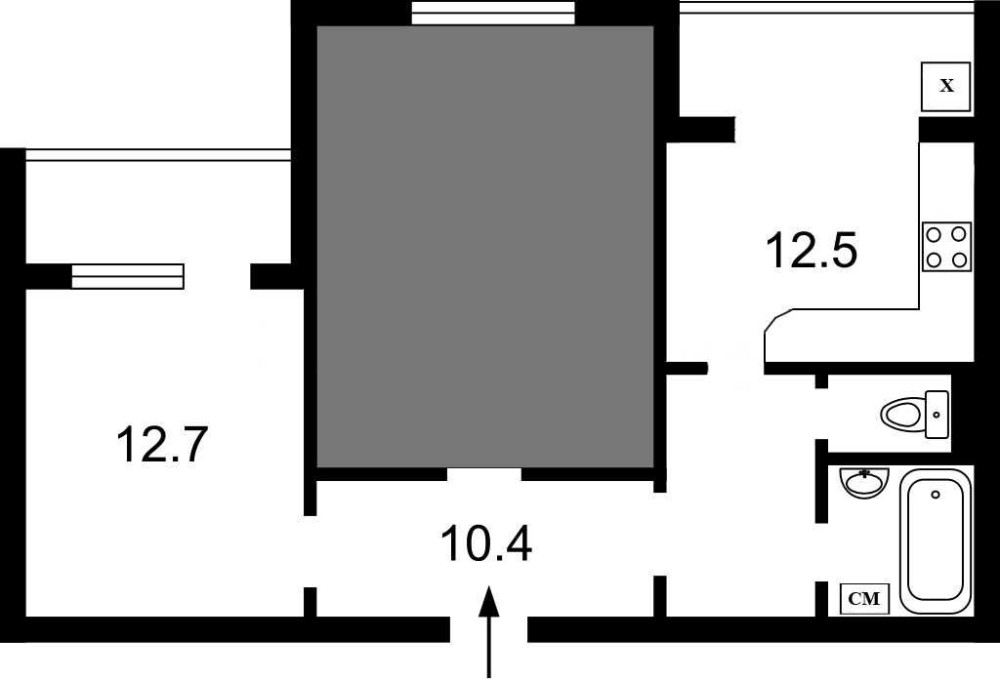 • Площадь кухни 12.5 м2