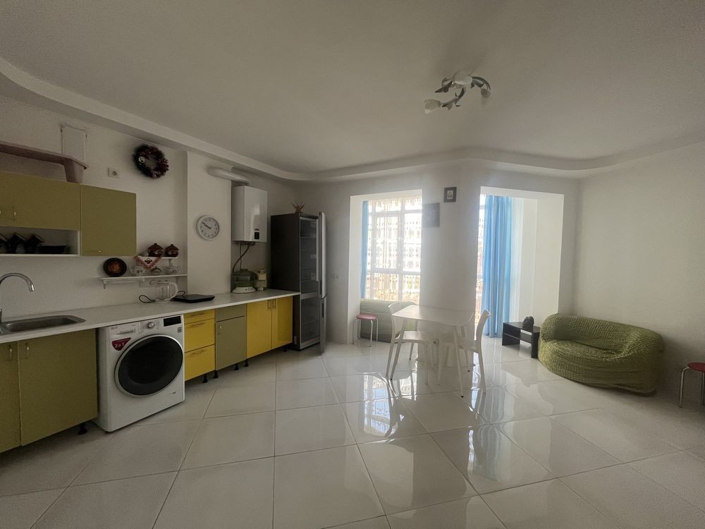 Оренда стильної 1 к кв з кухнею студією в новому будинку ЖК "Файна Таун" в Шевченківському районі, вул. Салютна, 2 Квартира 43 м2 , розташована на четвертому поверсі та складається з передпокою, спальні, великої кухні -студії та санвузла. Вікна квартири виходять в двір. Облаштована всіма необхідними меблями з екологічно чистої деревини та оснащена побутовою технікою: телевізор Samsung Smart 43, кондиціонери в кухні та кімнаті, плита індукційна, вбудований холодильник, духова шафа з функцією мікрохвильової печі, пральна машина з сушаркою. В кухні та ванній кімнаті тепла підлога, високошвидкісний інтернет. ЖК "Файна Таун" це: закрита територія з входом по картці, цілодобова охорона, відеоспостереження, паркінг, підземні контейнери для сміття, зарядні станції для електромобілів та лавки з інтегрованими батареями для підзарядки девайсів, розумне освітлення, яке підлаштовується під час доби та ще багато чого для того, щоб жити з комфортом й ні в чому себе не обмежувати) розповім при перегляді. Зручне транспортне сполучення та розвинута інфраструктура: магазини,спортивні та пішохідні зони ,зона барбекю, ресторани та кафе. Квартира, в якій поєднані комфорт та затишок, шукає своїх порядних орендарів молоду пару або одну людину без дітей та тварин. Перша оренда, квартира вільна.