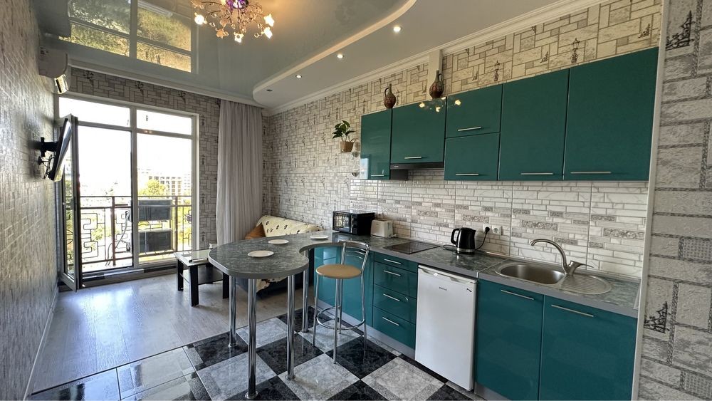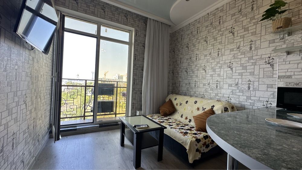 Квартира-1 спальня+кухня студия, расположена на 7 этаже 25 этажного нового дома, рядом с Аркадией