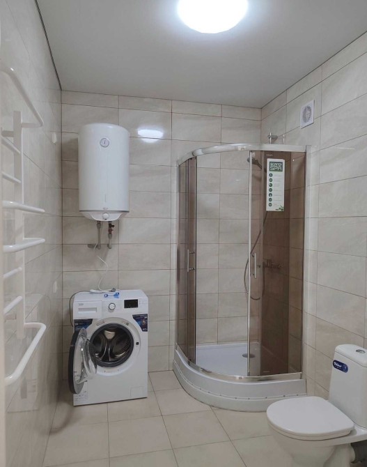 Есть всё необходимое: стиральная машина, бойлер, холодильник, кухня, стол и стулья, душевая кабина, диван, шкаф-купе, варочная поверхность, духовой шкаф, чайник, индивидуальное электроотопление.