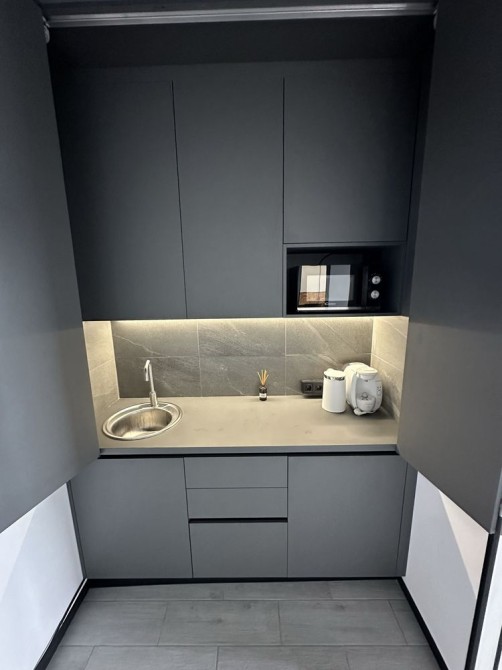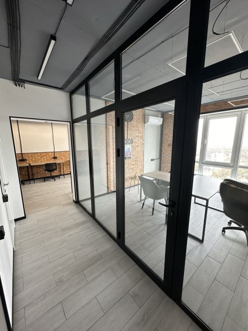 Офис укомплектован необходимой мебелью,есть мини кухня, кофе машина, микроволновая печь, кондиционер, бойлер, современная аудио система.