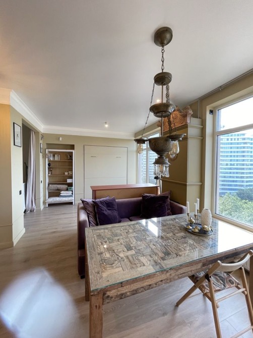 • Комфорт Кондиционер, Ванна, Мебель на кухне, Гардероб, Панорамные окна, Пожарная сигнализация, Видеонаблюдение, Консъерж, Охраняемая территория, Лифт