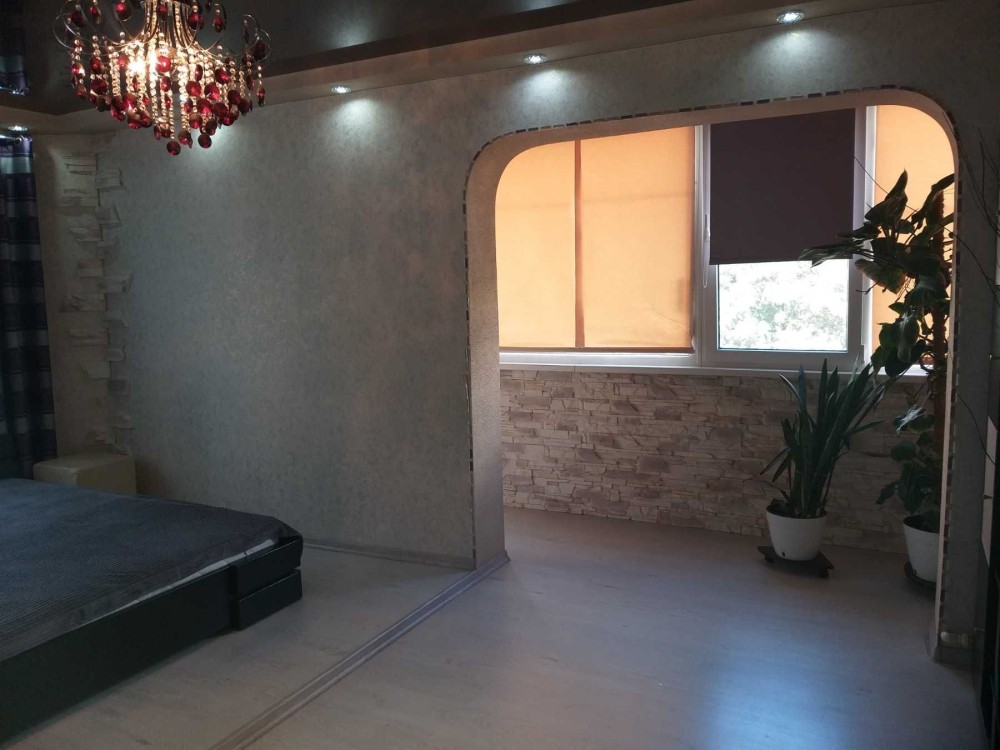 Сдам просторную 2-х комнатную квартиру на Таирова улица Королева/Тополевая.Квартира расположена на 4 этаже/9-ти этажного дома,сделана перепланировка в просторную кухня - студия + отдельная спальня с раскрытым аркой балконом.Квартира с ремонтом,есть вся необходимая мебель и бытовая техника.Двуспальная кровать + диванчик на кухне,современная стенка,прикроватные тумбочки,2 зеркальных шкафа - купе,комод,пенал,тумба под ТВ,журнальный стеклянный столик,встроенная кухня + обеденный стол + стулья.Стиральная машинка автомат,бойлер,холодильник,кондиционер,плазменный телевизор,духовой шкаф + варочная панель + вытяжка.На полу ламинат и кафель,санузел увеличен,туалет/душевая кабинка,облицовка плиткой,мп-окна,очень достойная квартира.Бронированные двери,тамбур.Цена 8500 Гривен + Ком Услуги + Залог + Услуги Маклера 50 %Длительно.Можно с ребенком.Без Животных.Отличная транспортная развязка.