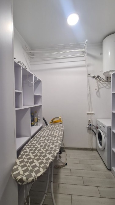 Есть большая гардеробная, утюг, гладильная доска, сушилка, пылесос, тарелки, большой шкаф купе