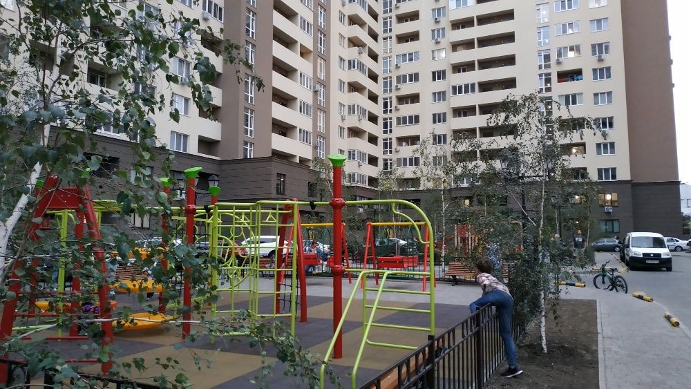 Вся территория комплекса охраняется круглосуточно, есть всегда свободные места для парковки во дворе, детские и спортивные площадки, въезд/вход по чип-ключам, в парадной находится консьерж. В ЖК много разных сфер обслуживания, также супермаркеты "Таврия", "Обжора". Хорошая транспортная развязка.
