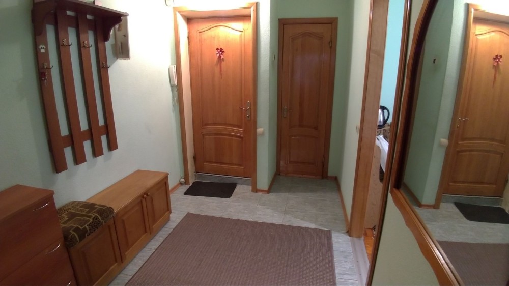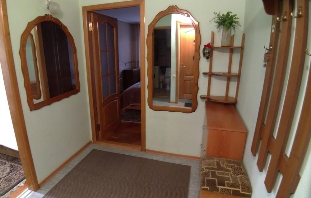 Квартира красивая и уютная: кухня, двери, зеркала натур. дерево, балкон простой, застеклен.