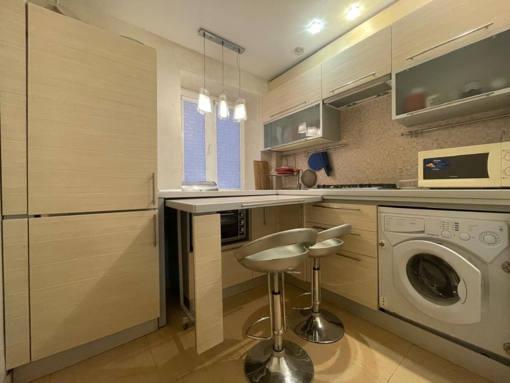 Общей площадью 42 кв. м, кухня 6 кв.м; комнаты раздельные с мебелью и бытовой техникой.