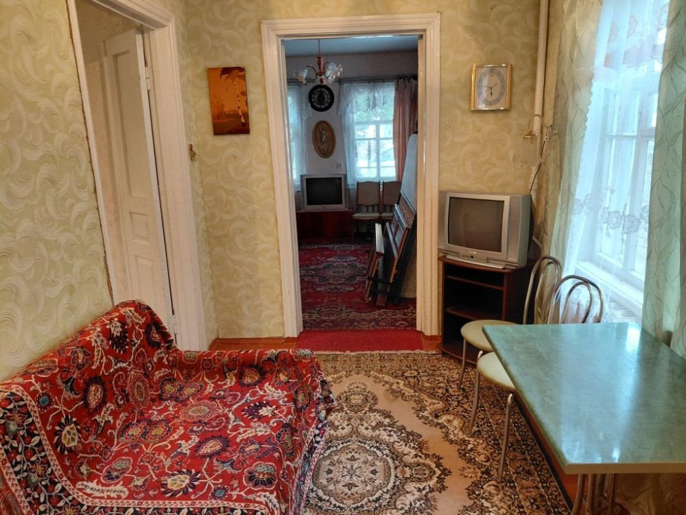 4- комнаты, кухня, санузел, прихожая, виранда. Газовый двухконтурный котёл, ванна, туалет, счётчики на газ, воду и свет. Во дворе два сарая с погребом, есть кусок земли, отдельный вход, гараж.