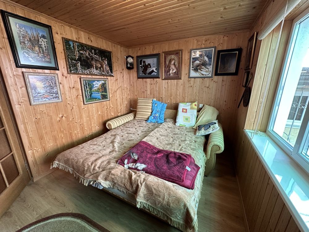 Продам капитальный дом-дачу в 4 этажа размерами 6,4 х 8,8 м расположенном в спокойном районе на живописном берегу Хаджибейского лимана Раздельнянского района Одесской обл. в 45 км от Одессы по Киевской трассе с участком. Торг возможен. Дом предназначен для постоянного комфортного проживания и отдыха в любое время года, построен для себя с любовью и теплом общей площадью – 193.5 кв.м, из них жилая – 77.3 кв.м., другие – 116.2 кв.м. Рядом село Бурдовка, где есть несколько магазинов, детский сад, школа и постоянно ходят маршрутки. Дом расположен на приватизированном участке площадью 12 соток з посаженными различными плодовыми и декоративными деревьями, виноградом разных сортов, (площадь участка фактически больше и есть возможность расширения). Акт приватизации - серия ПЛ №519264, кадастровый №5123981700:01:004:0608. На участке растет все что посадишь при надлежащем уходе, деревья на участке старые и требуют омоложения. К дому подведено электричество, водоснабжение и рядом на столбах электроснабжения смонтирована линия кабельного интернета и телевидения – возможно подключение к дому. Во дворе расположен колодец-чаша на 7 куб. м, который может заполняться от системы водоснабжения массива. Дом построен з ракушняка и обложен селикатным кирпичом с тепловым зазором для лучшего сохранения тепла. Потолки утеплены пенопластом. Все входные двери дома металлические и обшитые деревом. Окна з двойным остеклением и установленными защитными металлическими решётками. Крыша з керамической черепицы. Установлена автономная солнечная электростанция мощностью 2.4 квт с автоматическим переходом на сетевое напряжение в случае повышенной нагрузки на сеть дома. Установлена система охраной сигнализации оборудованная датчиками движения и видеокамерами по периметру дома. Извещения от сигнализации приходят на смартфон. С него также возможно управление самой сигнализацией, освещением комнат дома, включение электрокотла отопления, полив участка и т.д. Телевизоры в доме работают от обычной и спутниковой антенн. Дом оборудован системой канализации для отвода сточных вод и системой водоснабжения от напорного бака расположенного на крыше дома и заполняемого насосом из колодца или непосредственно от системы водоснабжения кооператива. Вода в системе дома греется электробойлером. Дом отапливается системой водяного отопления с автоматизированным электрокотлом поддерживающим температуру в доме на автомате и также работающего на твердом топливе и обычной печкой на твердом топливе з духовкой. Система водяного отопления имеет принудительную циркуляцию насосом для быстрого прогрева дома и заполнена антифризом. Первый уровень дома расположен практически в земле, где находятся: 1) - гараж пл. 23,7 кв. м с местом для автомобиля и хранения различного оборудования, стройматериалов, комбинированного деревообрабатывающего станка (строгание, фрезерование, циркулярка, наждак) и т.д.; 2) - электросауна пл. 3,8 кв. м с регулируемой мощностью 5 квт и с помещением душа пл. 3,3 кв. м; 3) - подвал пл. 11,0 кв. м для хранения урожая и консервации, дубовых бочек для вина и различных ёмкостей; 4) лестница и вход на второй уровень; 5) - на входе в гараж слева и справа расположены 2 подсобных помещения для хранения угля, дров и сельхозинвентаря площадью по 3,45 кв. м каждое. На втором уровне расположены: 1) - коридор пл