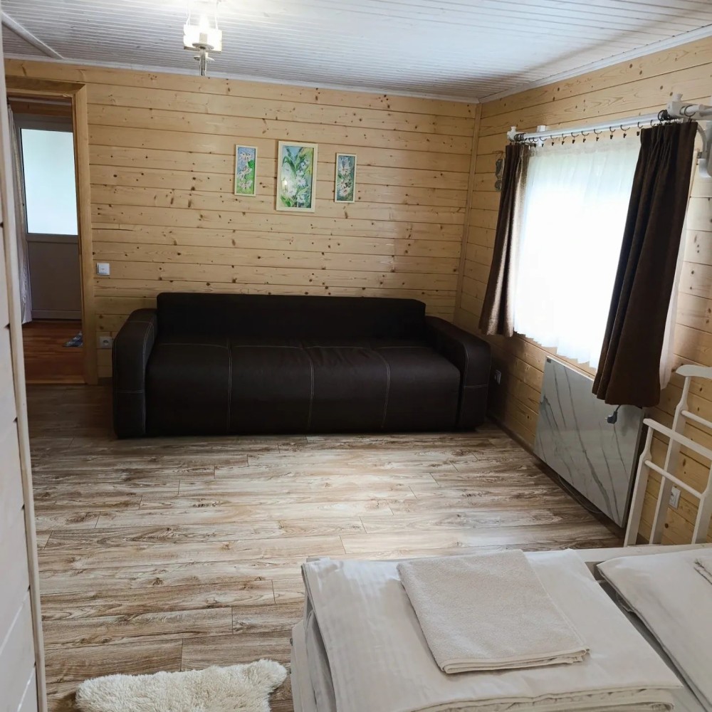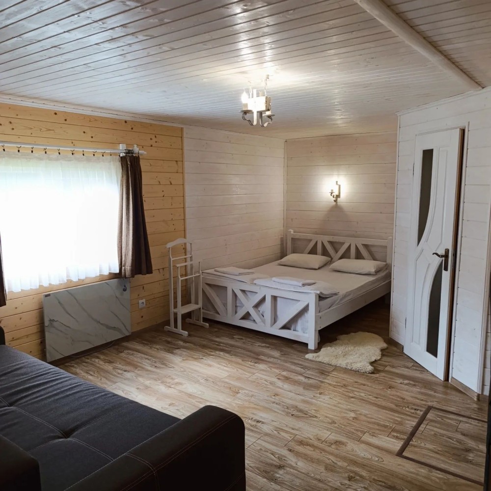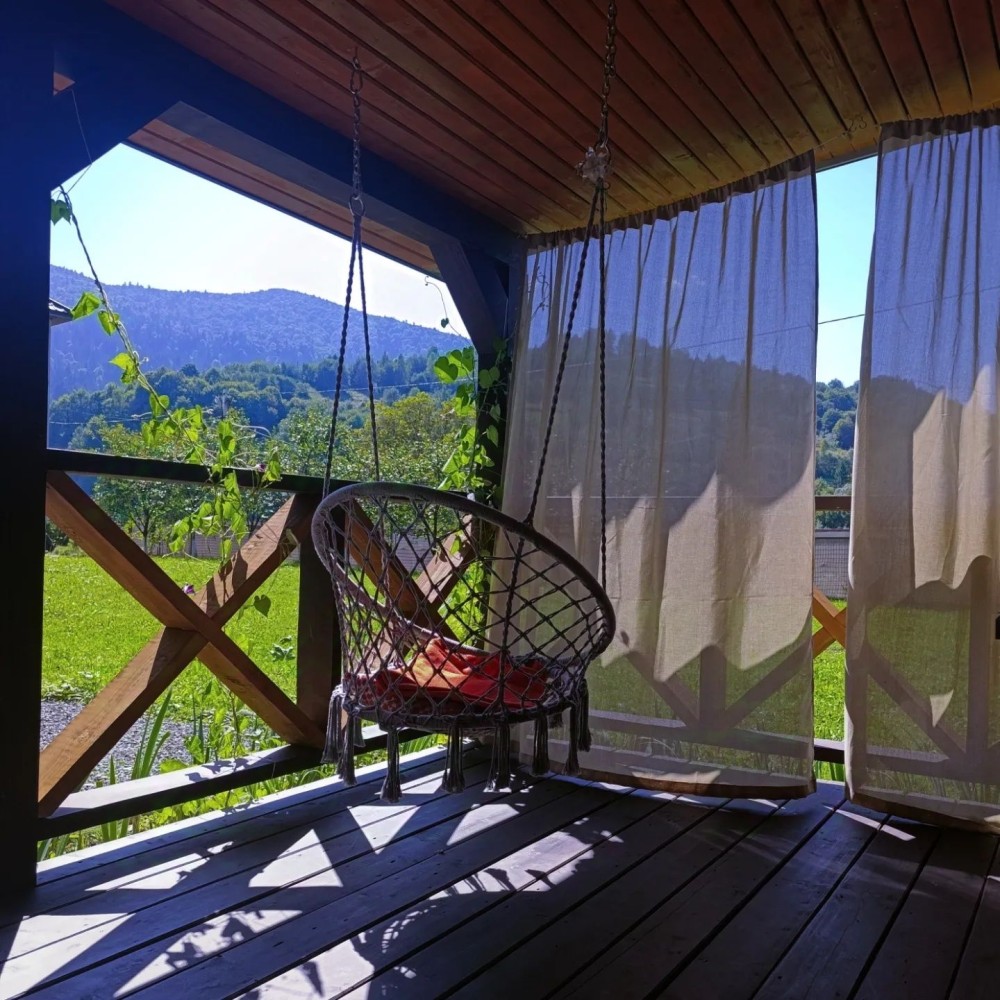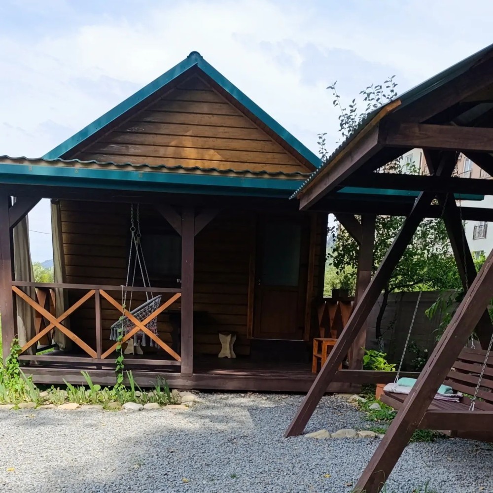 Будиночок для двох чи чотирьох осіб,з каміном, розташований поблизу гірської річки.Затишна кухня з усім необхідним (електроплитка,чайник,мікрохвильовка,холодильник,посуд).Душова кімната з пральною машинкою.Простора тераса з видом на вишневий сад,гори та річку.1800 з двох людей,2000 з 3 і 2200 з 4 людей.