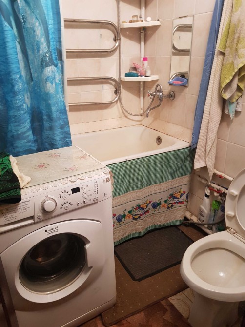 Отдельная комната, стиральная машина. В соседней комнате живёт один хозяин-пенсионер.